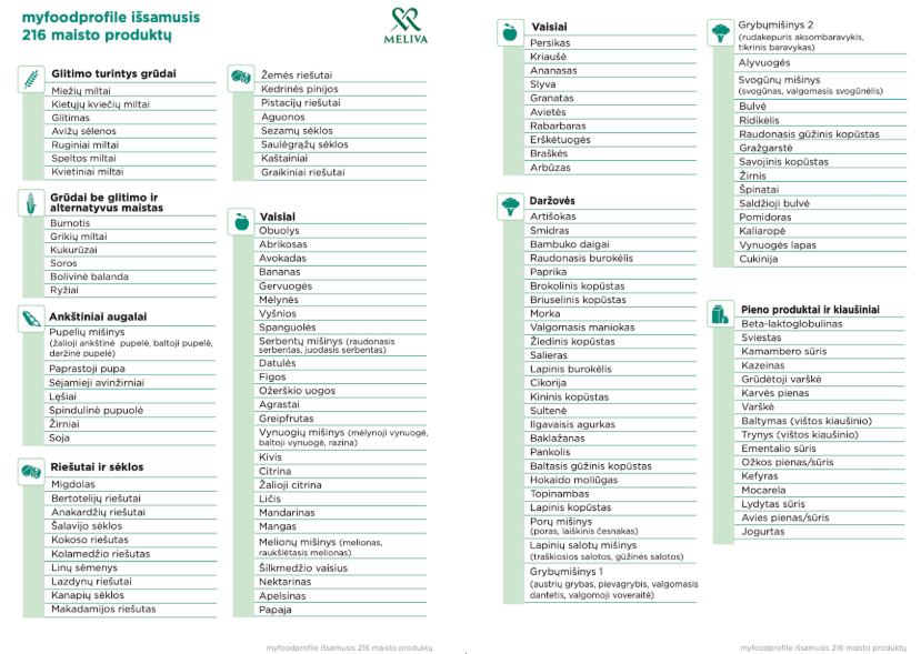 „My Food Profile“ (216 produktų) – tai plataus spektro maisto netoleravimo laboratorinis tyrimas, skirtas įvertinti organizmo imunologinį atsaką į itin didelį maisto produktų kiekį.